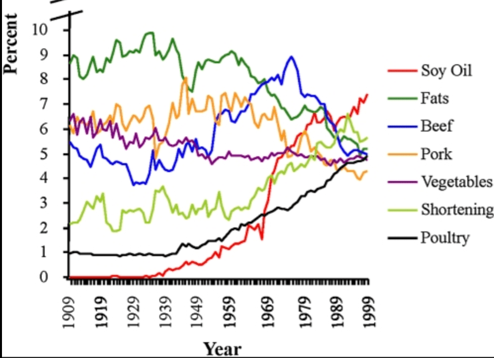 Fact of the day: Today, soybean oil is the single-largest source of calories in the United States. 120 years ago, it didn’t exist.